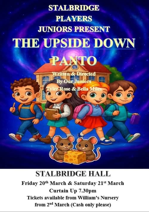 Stalbridge Players Juniors present: The Upside Down Panto! Stalbridge HallFriday 20th and Saturday 21st MarchCurtain Up @ 7:30pm Tickets available now from Williams Florist, Station Road, Stalbridge (Cash only bar before and during interval) Share this: Share on X (Opens in new window) X Share on Facebook (Opens in new window) Facebook Share on WhatsApp (Opens in new window) WhatsApp Print (Opens in new window) Print Email a link to a friend (Opens in new window) Email Related Categories: NewsNewsflash 0 Comments Leave a Reply Cancel replyYour email address will not be published. Required fields are marked * Name * Email * Website What's on your mind? Notify me of follow-up comments by email. Notify me of new posts by email. Δ This site uses Akismet to reduce spam. Learn how your comment data is processed.